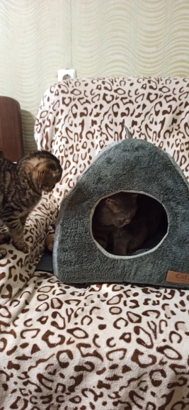 ¿Buscas versatilidad y confort total? El Nido Casa Triangular para Gatos es la solución perfecta. Gracias a su diseño inteligente, funciona como una cueva cerrada para brindar privacidad y calor en días fríos, pero también se transforma fácilmente en un sofá/cama abierto simplemente presionando la parte superior hacia abajo. Es el santuario ideal para un sueño profundo y reparador durante todo el año.